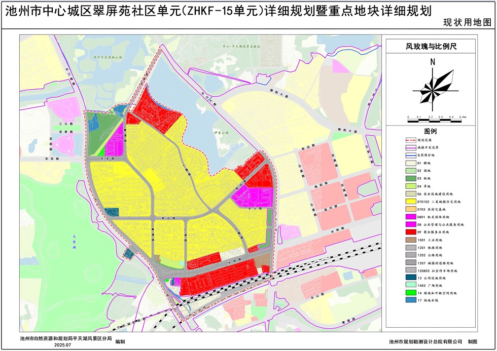 2、现根据《中华人民共和国城乡规划法》、《国土空间规划公示公开规定(暂行)》等法律法规的规定,将《池州市中心城区翠屏苑社区单元(ZHKF-15 单元)详细规划暨重点地块详细规划》进行批前公示,若有意见,请尽快向市自然资源和规划局反馈。