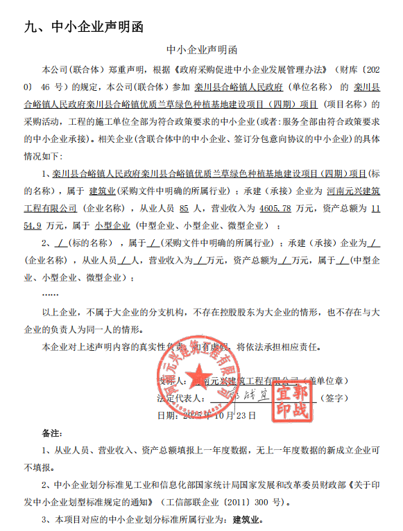 1、项目名称:******人民政府栾川县合峪镇优质兰草绿色种植基地建设项目(四期)项目