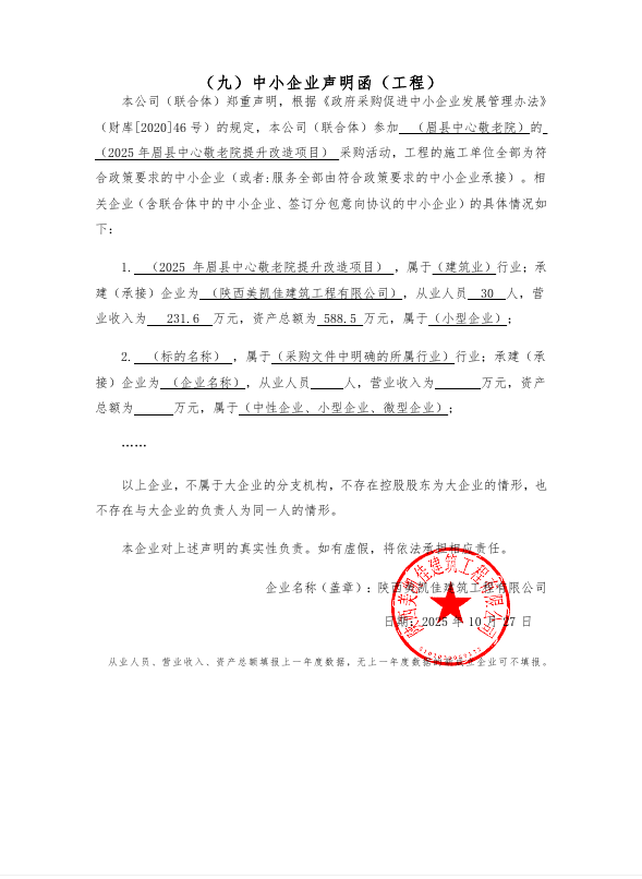 眉县中心敬老院2025年提升改造项目中标(成交)明细.pdf 中小企业声明函.png