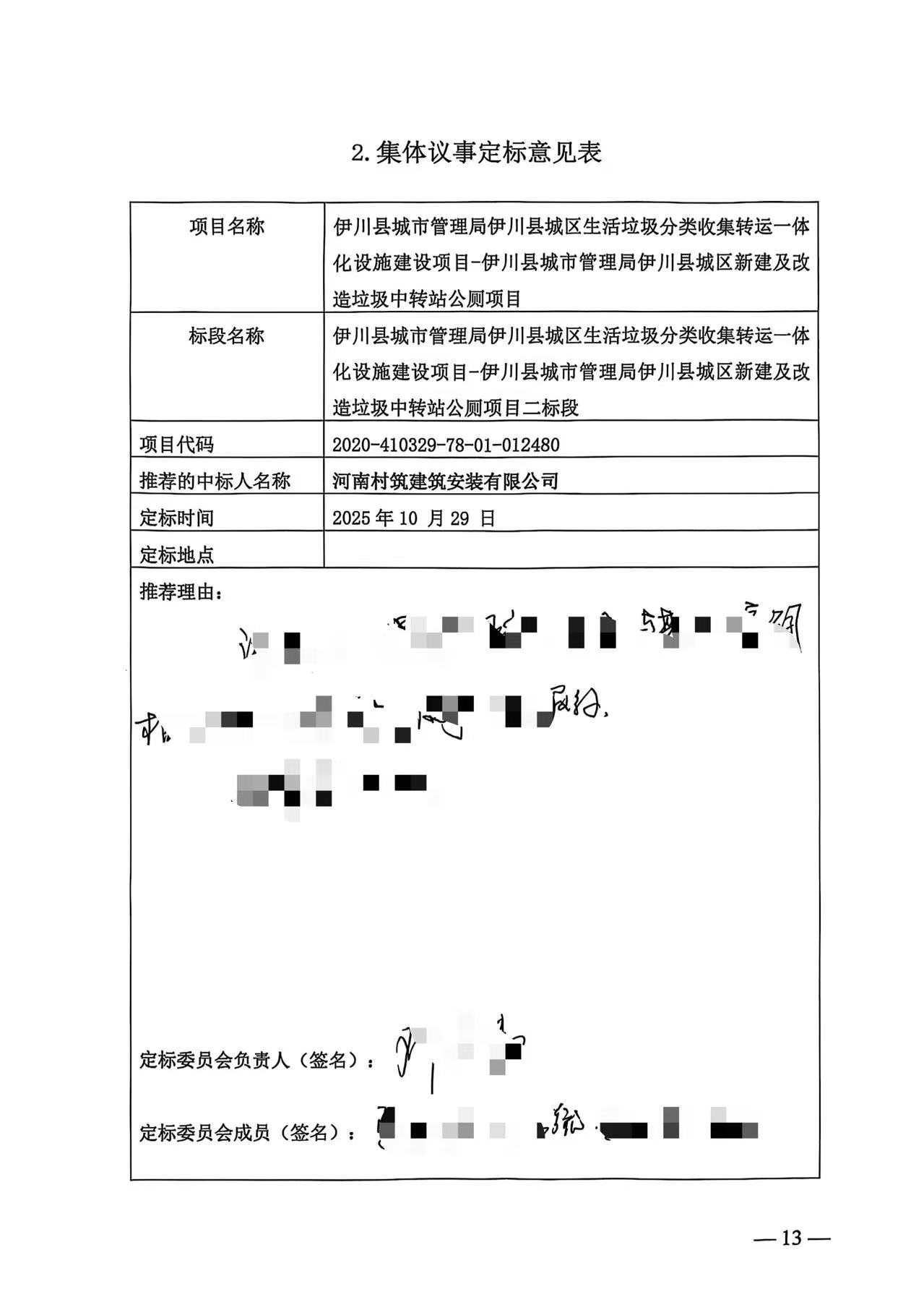 伊川县城市管理局伊川县城区生活垃圾分类收集转运一体化设施建设项目-伊川县城市管理局伊川县城区新建及改造垃圾中转站公厕项目二标段中标结果公示