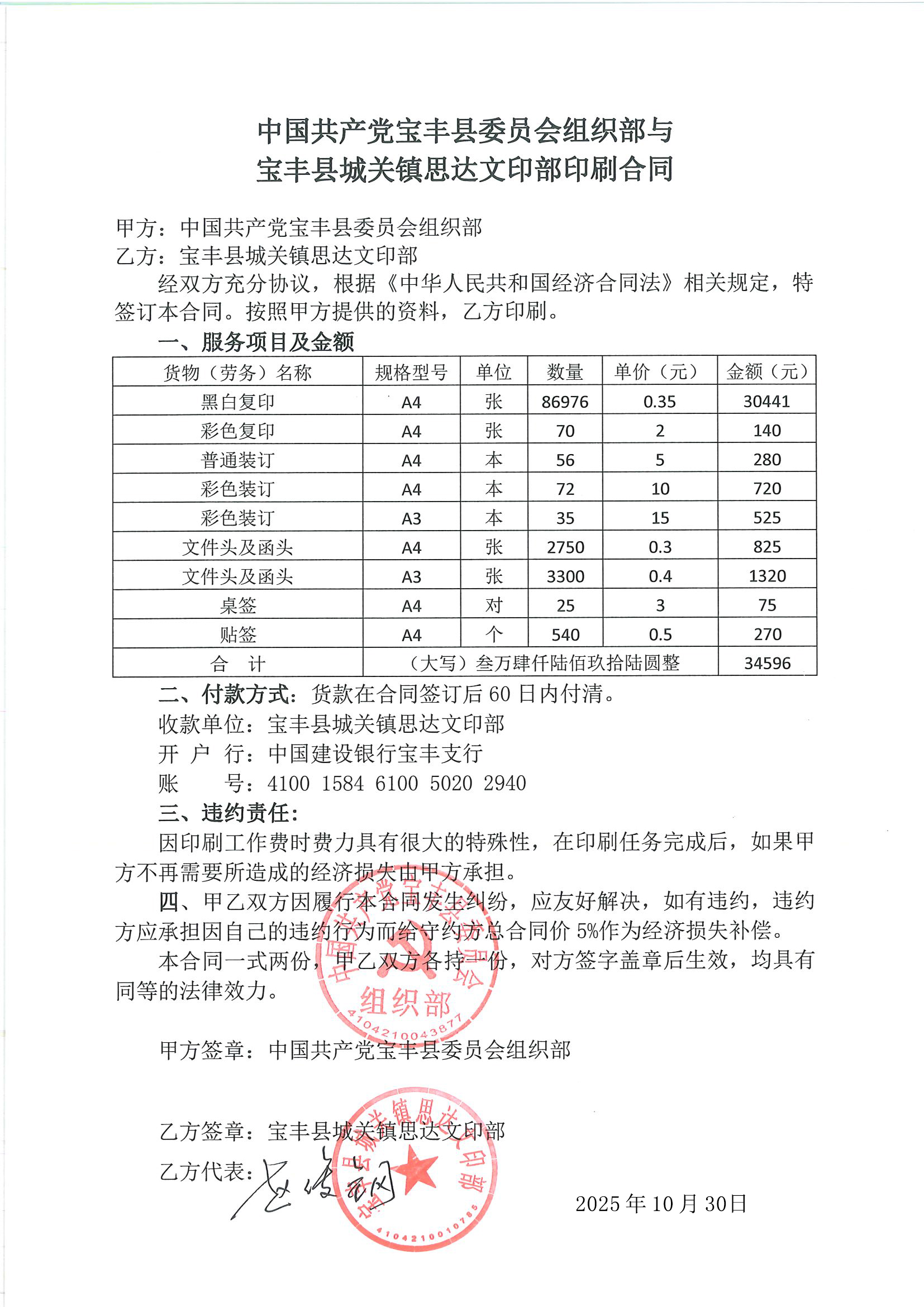 | 七、合同签订日期:2025年10月30日 | ||||||||||||